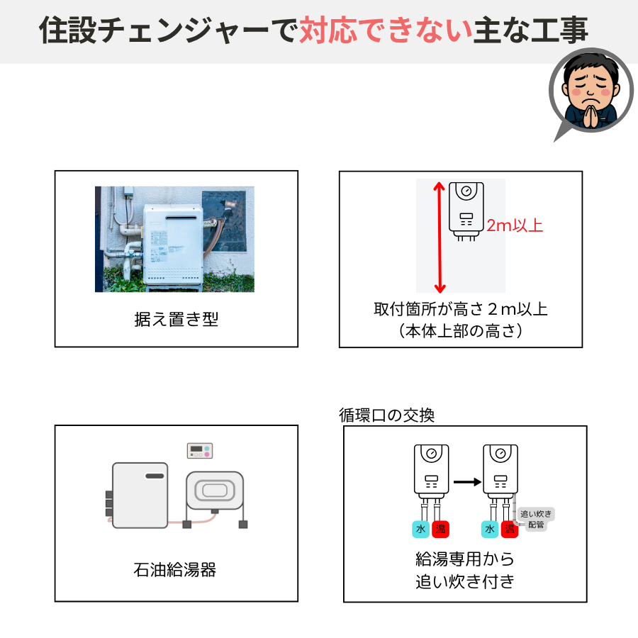 住設チェンジャーで対応できる工事、できない工事がございます。