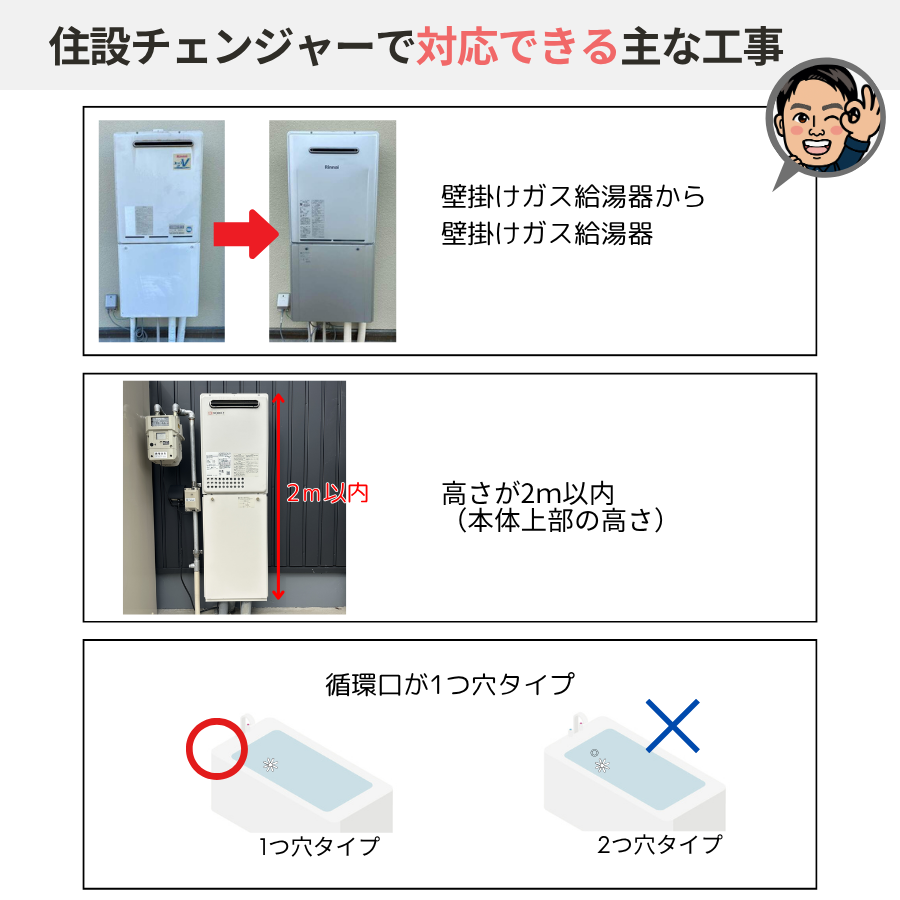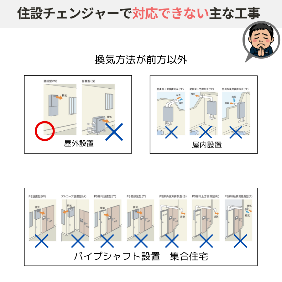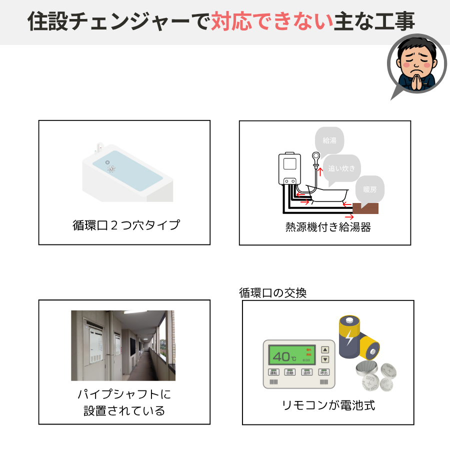 住設チェンジャーで対応できる工事、できない工事がございます。